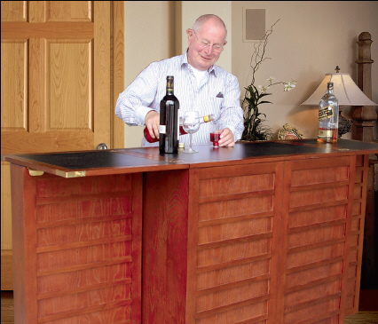 on wheels, een luxe barmeubel, verrijdbaar en inklapbaar.
